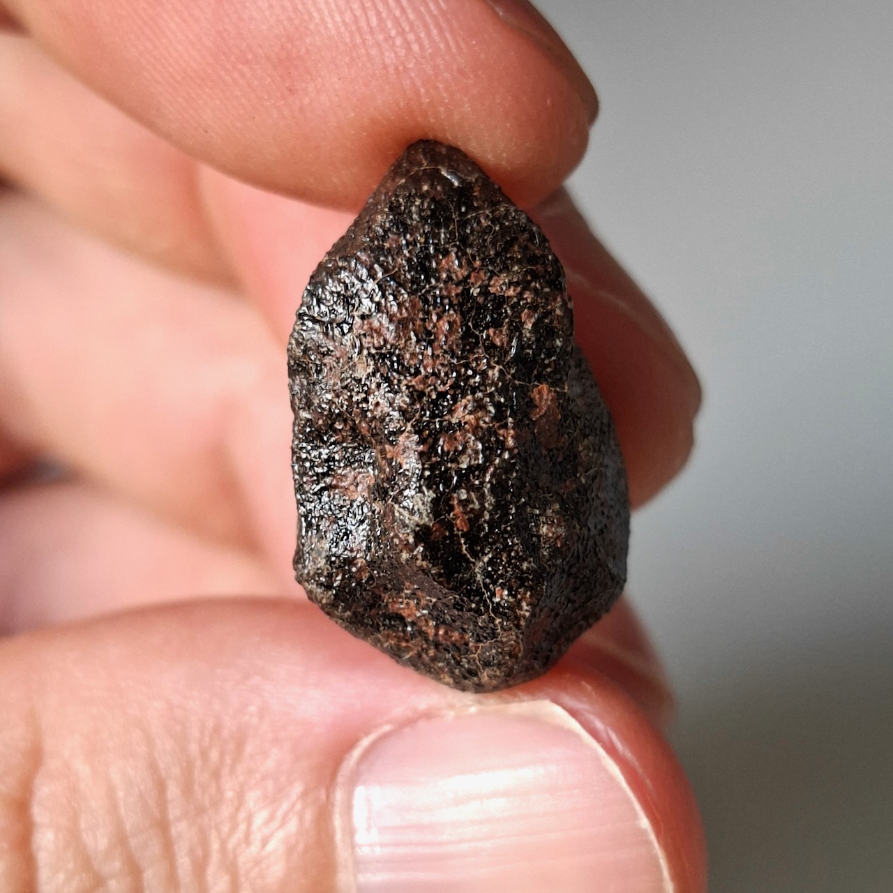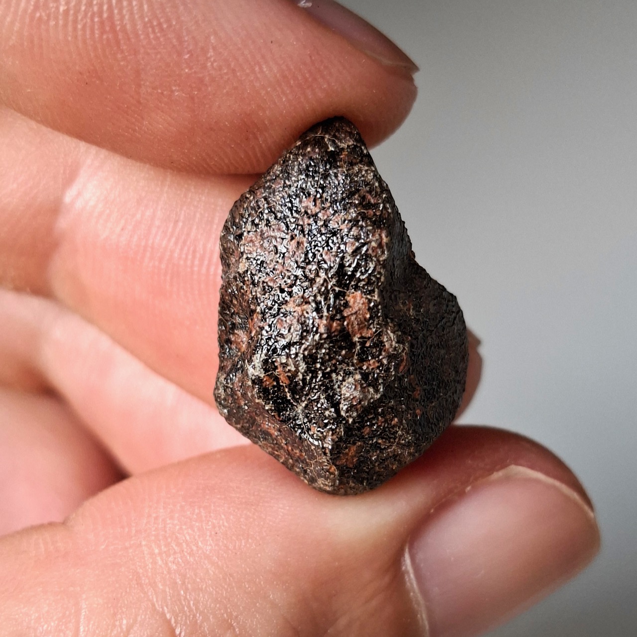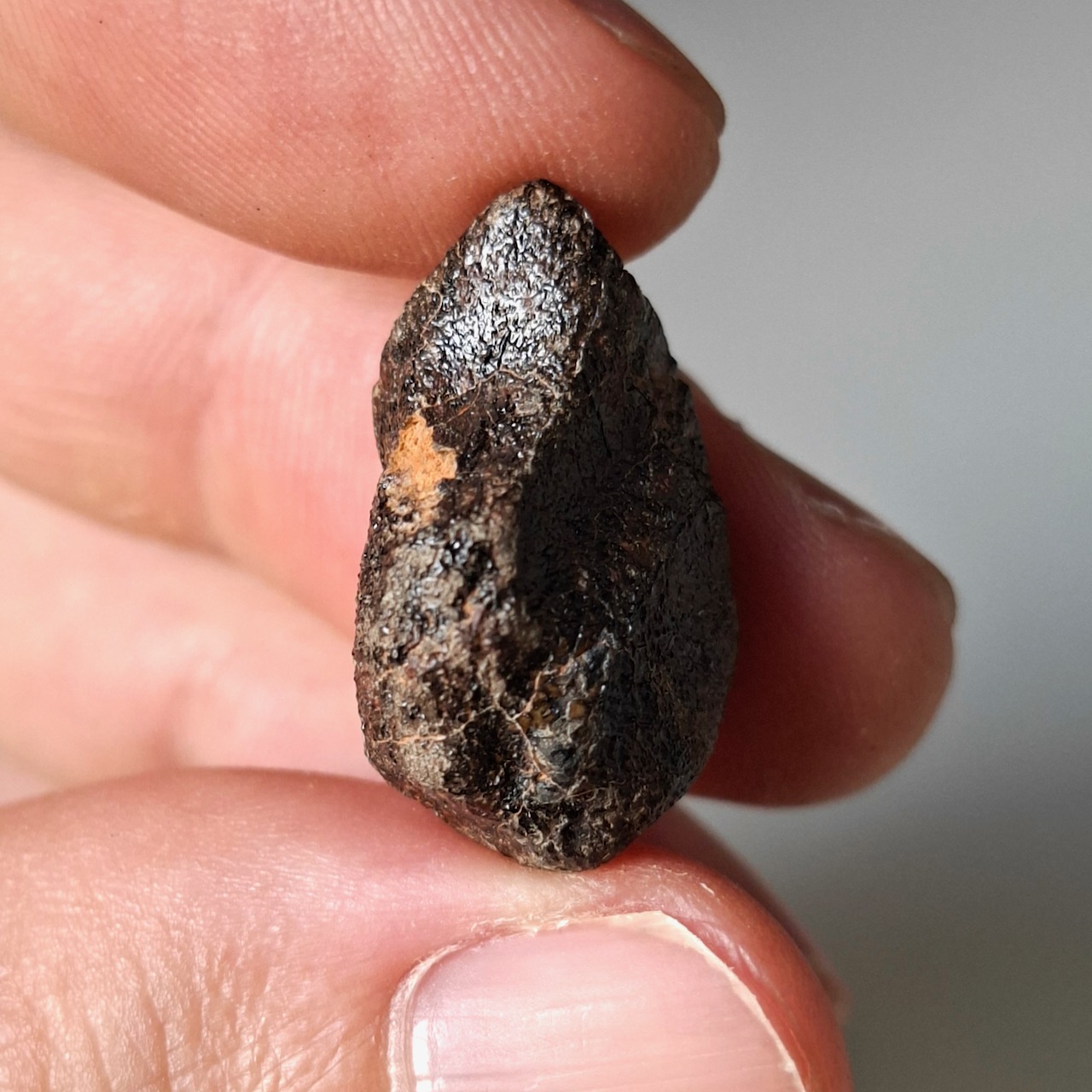 Flow lines and shinny crust are typical, along with occasionally some fine orange caliche from the Australian desert. On average, Camel Donga meteorites are very small, most of them being below 10 grams.