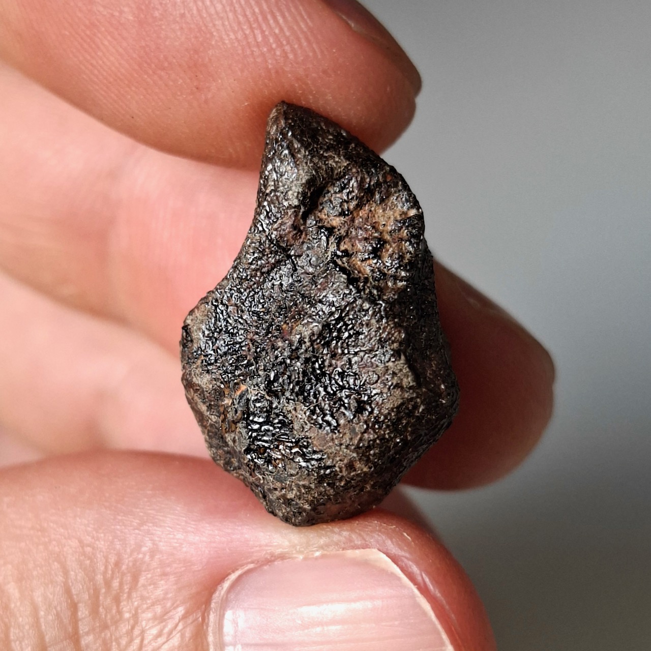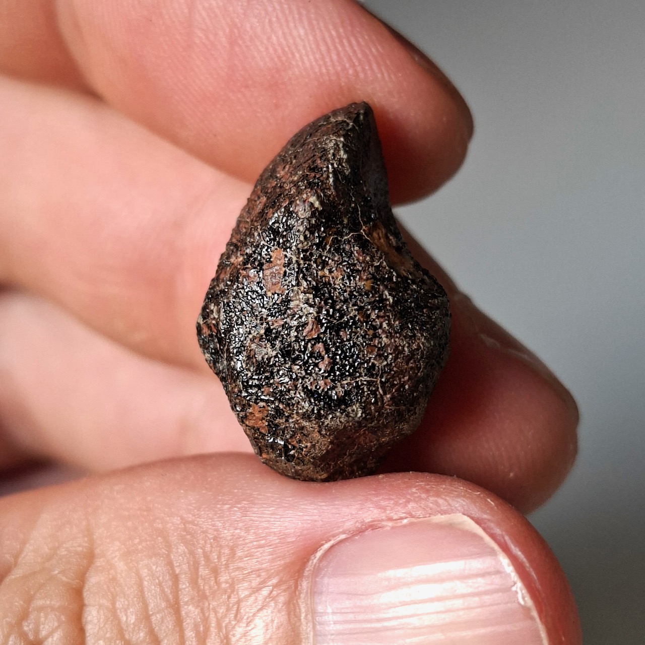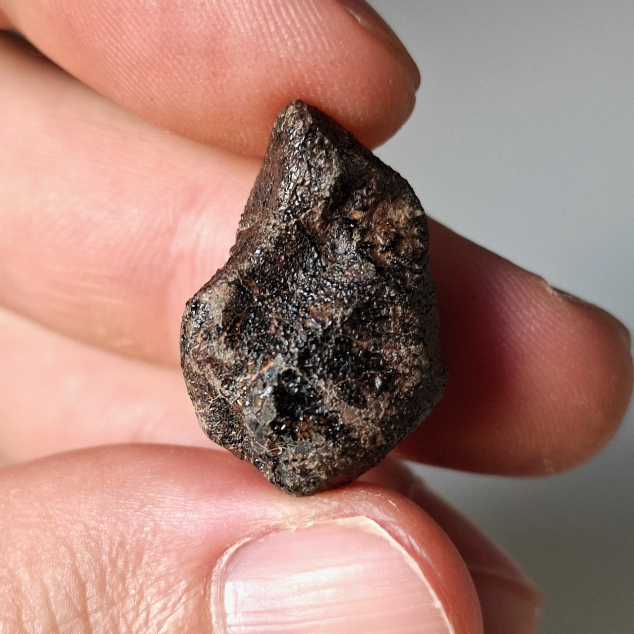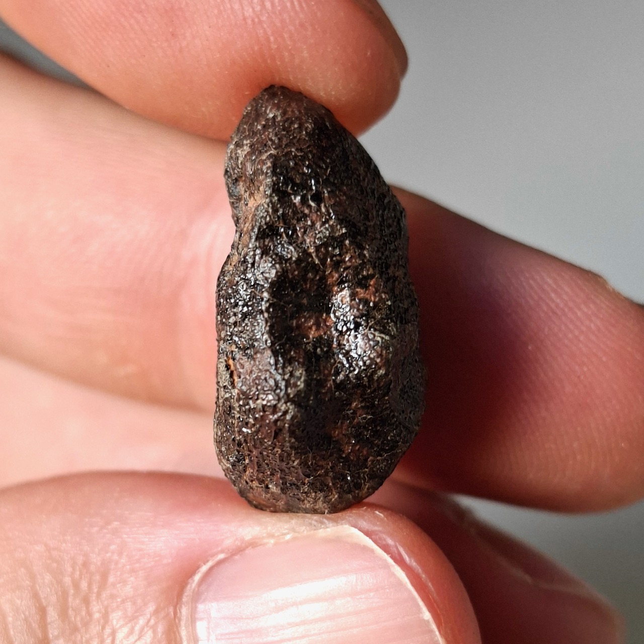 Flow lines and shinny crust are typical, along with occasionally some fine orange caliche from the Australian desert. On average, Camel Donga meteorites are very small, most of them being below 10 grams.